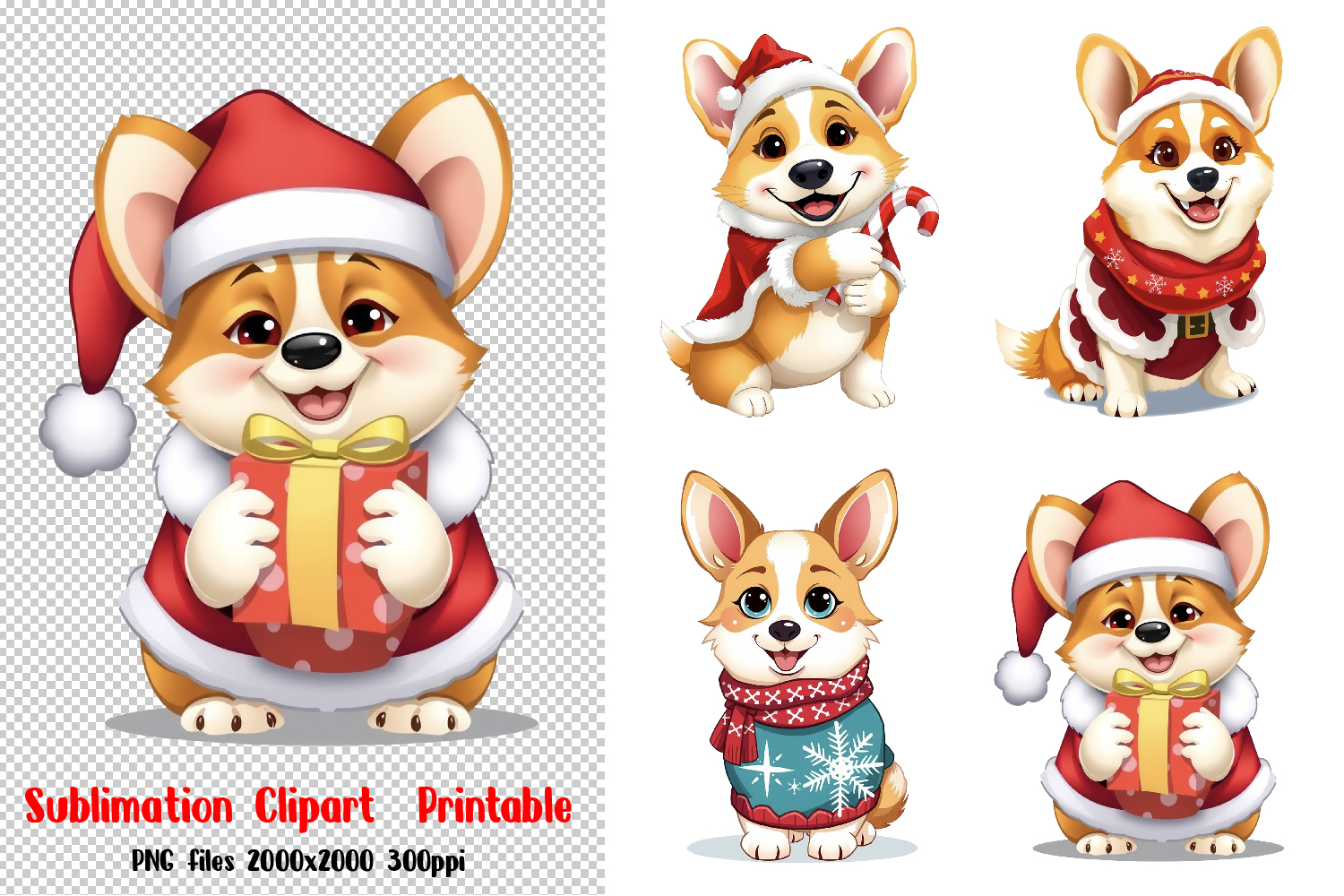 Christmas Dog, Dogs in Christmas Santa Hats Sublimation Clip example image 1