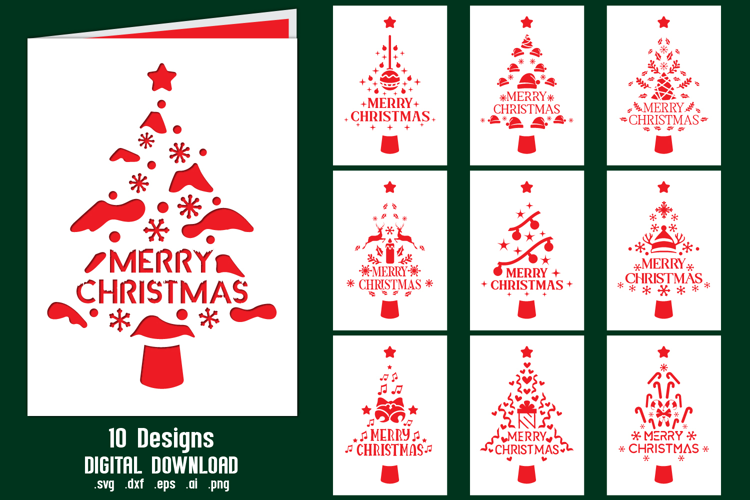 BUNDLE - 10 Merry Christmas Card Template, DIY Papercut