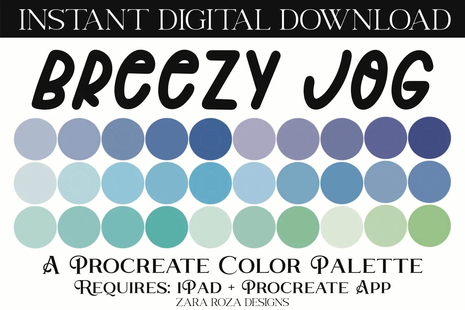Breezy Jog Procreate Color Palette – This app add-on tool is 1 color / colour scheme with 30 swatches, handpicked pastel soft & light blue, green, purple tones for a calm, relaxing, floral, nature, natural, flower, nature, boho, travel, wanderlust, water aesthetic & mood. A color palette for for painting & drawing in the Procreate app with digital brushes. For classy lettering, makeup tones, food art, retro vintage tones for digital artists, graphic design, calligraphy, illustrating / illustration, painting, portrait art, landscape art, digital art, apple pencil drawing, sketching, lettering, graphic design, calligraphy, digital art, makeup, shading, highlighting, eye shadow, nail art. Handpicked colors to capture a retro vintage, cute, classy, elegant, sweet, earthy, nature, floral, flower, 70s 80s 90s, pastel, boho, artsy charm, Winter, wanderlust, elegant mood, vibes & aesthetic for graphic design, backgrounds, scrapbook elements, social media, Facebook, Twitter, Instagram, branding, logos, business cards, posts, drawing, doodling, illustrating, painting, digital illustration & lettering.