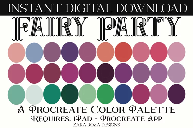 Fairy Party Procreate Color Palette – A colourful boho rainbow colour / color palette tool with 30 swatches with a magic fairy, fae, faery, Halloween, trick or treat, festive holiday, forest, woods, natural, nature, cute, enchanted, magical aesthetic. for digital artists, graphic design, calligraphy, drawing, illustrating / illustration, painting, portrait art, landscape sketching faces, hand lettering, graphic design, calligraphy, digital art, makeup, lipstick, lips, eye shadow, eyes, blush, contouring, nail art. 30 swatches – yellow, orange, red, purple, blue, green tones and colors handpicked to capture a retro vintage, cute, classy, sweet, earthy, nature, floral, flower, 70s 80s 90s, pastel, boho, artsy charm, elegant mood, vibes and aesthetic for digitally painting makeup, nature, water, trees, forests, floral swatches, flowers, gardens, parks, etc.