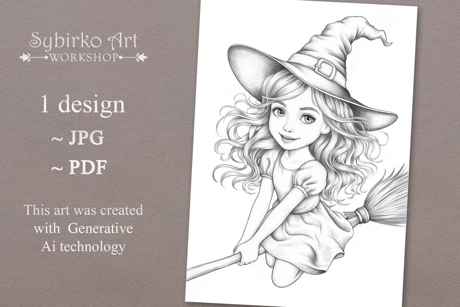 Similar Design Products to Halloween coloring page for adults. Coloring book witch