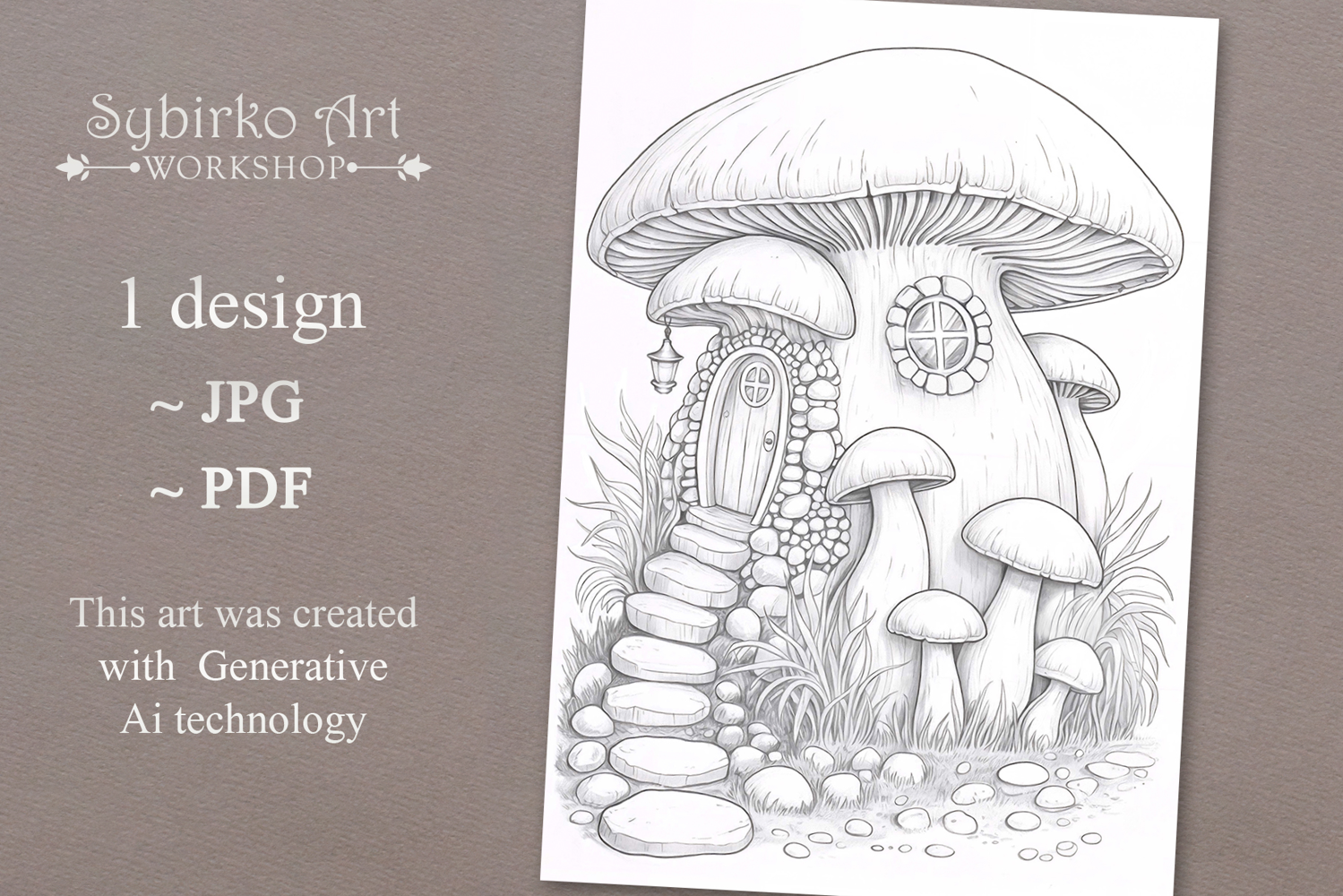 Similar Design Products to Gnome house coloring page for adults. Adult coloring page