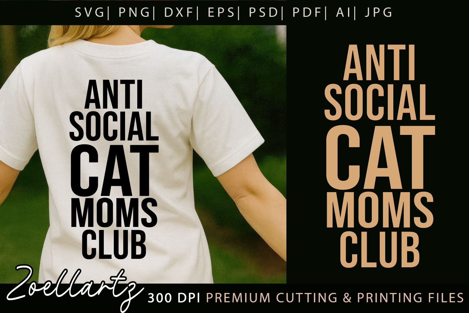 Anti-Social Cat Moms Club SVG Cut Files Cat Mom T-shirt Mug