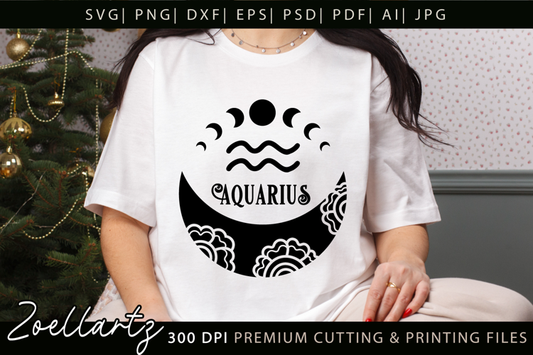 AQUARIUS Zodiac Sign SVG for Cricut Celestial moon SVG