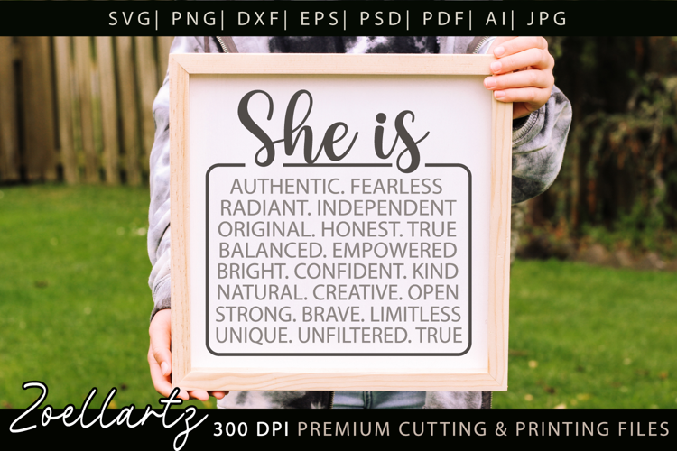 She Is Strong Fearless Brave Empowered Independent Kind SVG example image 1