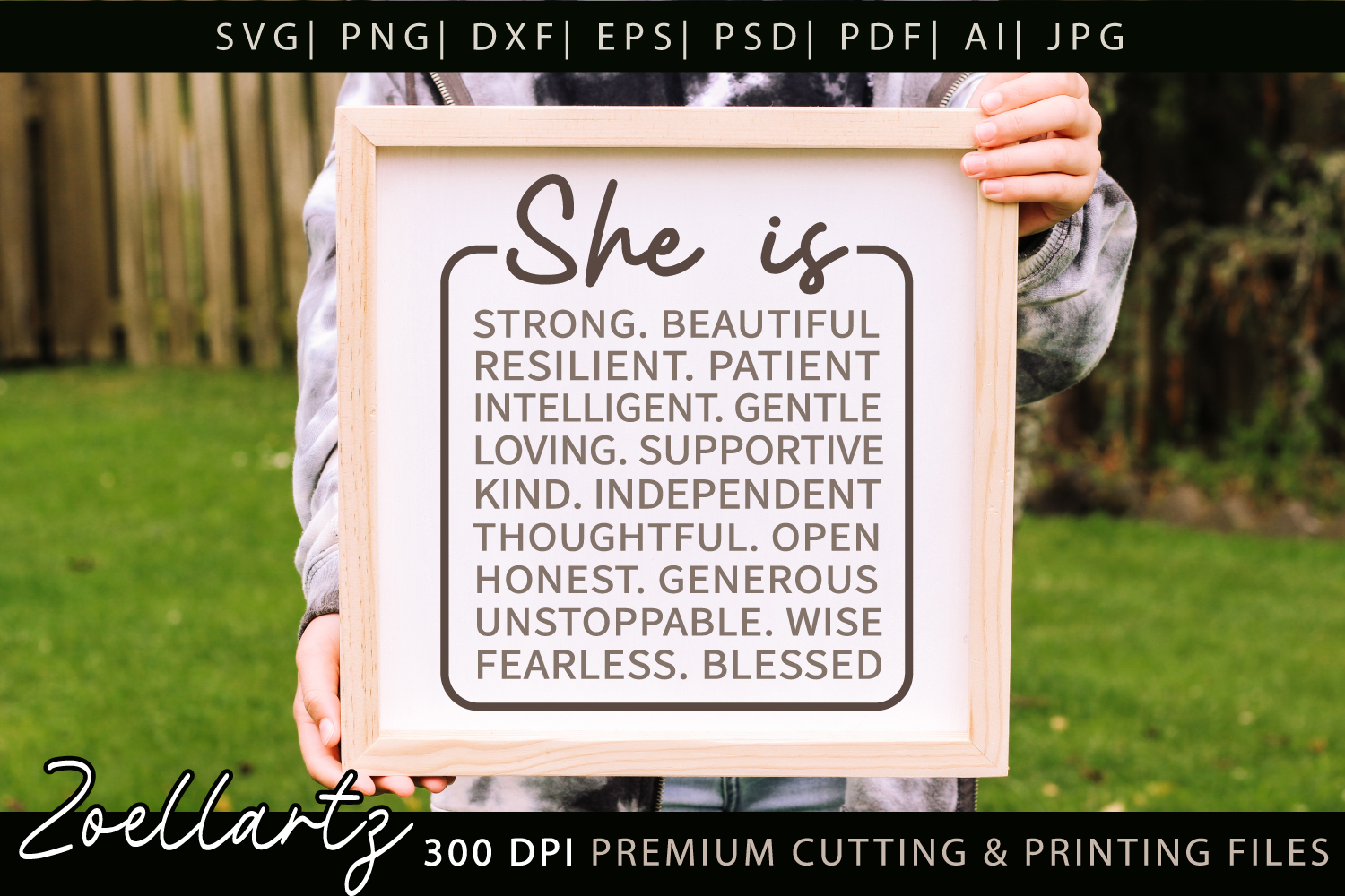 Women Empowerment SVG She Is Strong Fearless Brave Kind SVG example image 1